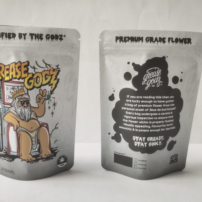 The best flower in Canada, pre-bagged in Grease Godz branded mylars, with vacuum sealed food grade foil inside.
